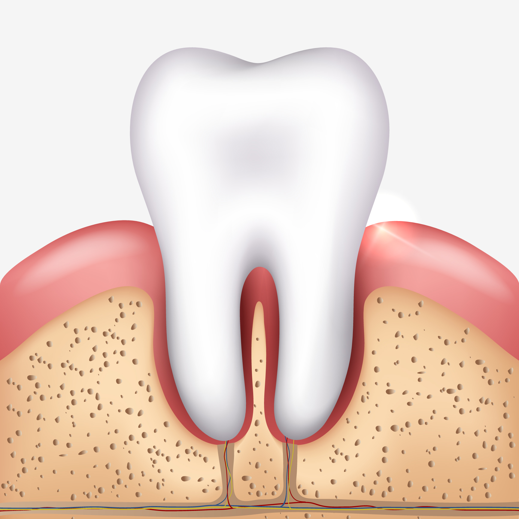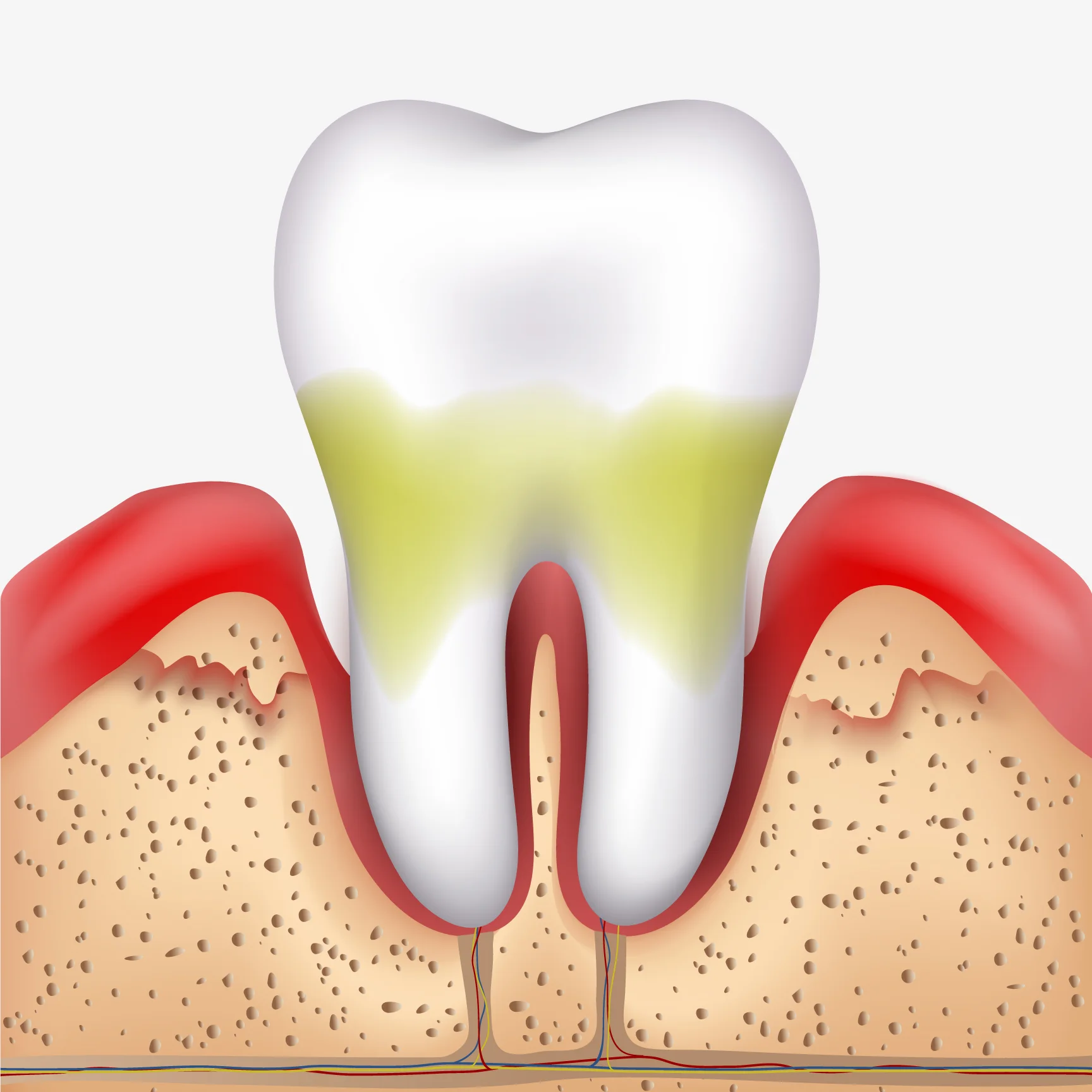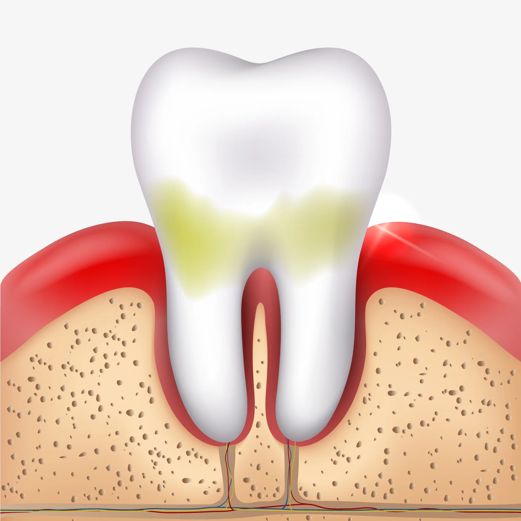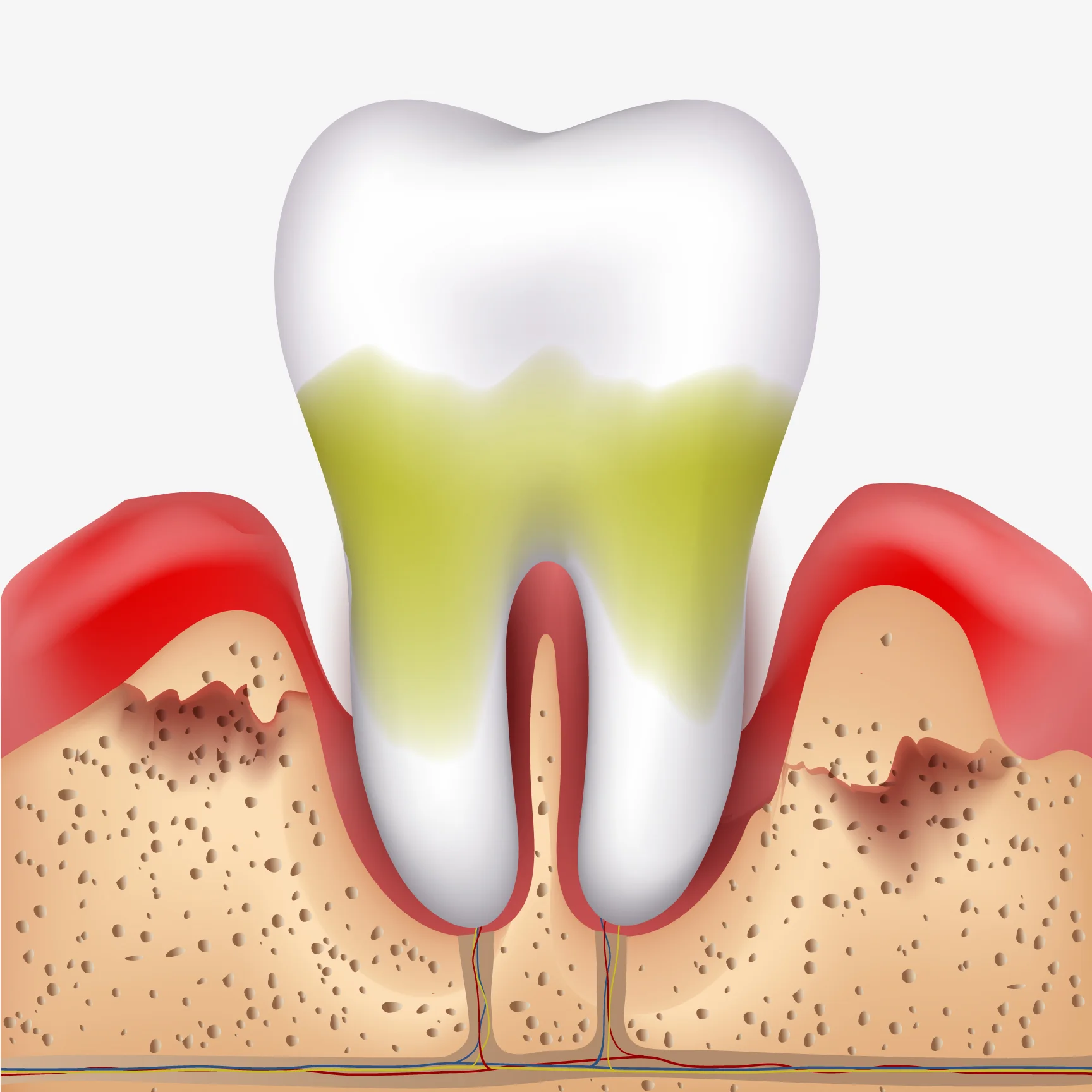 Periodontal disease and gingivitis occur when bacteria from plaque colonise on the gingival (gum) tissue, either above or below the gum line. These bacteria colonies cause serious inflammation and irritation, which, in turn, produce a chronic inflammatory response in the body. As a result, the body begins to systematically destroy gum and bone tissue, making the teeth shift, become unstable, or completely fall out. The pockets between the gums and teeth become deeper and house more bacteria which may travel via the bloodstream and infect other parts of the body.