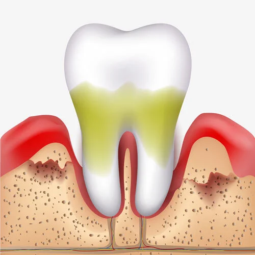 Periodontal Disease – If the untreated gum infection reaches the deeper areas of the tooth, it is not accessible to brushing and a deep seated infection develops that can lead to bone loss (Periodontal Disease). This bone loss affects the foundations of the teeth and can lead to ultimate loss of the tooth if untreated by your dentist.