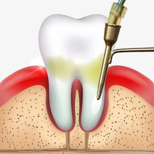 Before Perioscopy®, a specialist dentist known as a Periodontist, would perform gum surgery to expose the affected roots of teeth to clean off all deposits that cause periodontal disease. The surgical procedure involves cutting the gums and pulling them away from the roots of teeth to see and remove the deposits that could not be removed with normal scaling by the hygienist. The periodontal surgery, although effective, is invasive, which can be uncomfortable, expensive and takes a significant time to heal.
